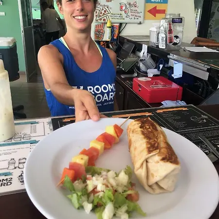 Pratos da cozinha internationale são servidos no restaurante Amerikaans restaurant. Os hóspedes podem saborear os pratos da cozinha gezonde no Casa Vegan, localizado a um curto caminho do Room2Board Hostel And Surf School. A estação rodoviária mais próxima é a El Estadio, localizada a cerca de 300 metros de distância. Este hostel tem sala de estar grande. As comodidades de lazer incluem terraço no último andar e rede de jardim.